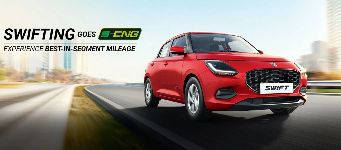 Discover unmatched efficiency with the Epic Swift, now featuring our Factory-Fitted S-CNG technology. This combination of the Z-Series Engine and S-CNG helps achieve the best-in-segment mileage of 32.85* km/kg without compromising on what makes the swift special; its exhilarating driving dynamics.